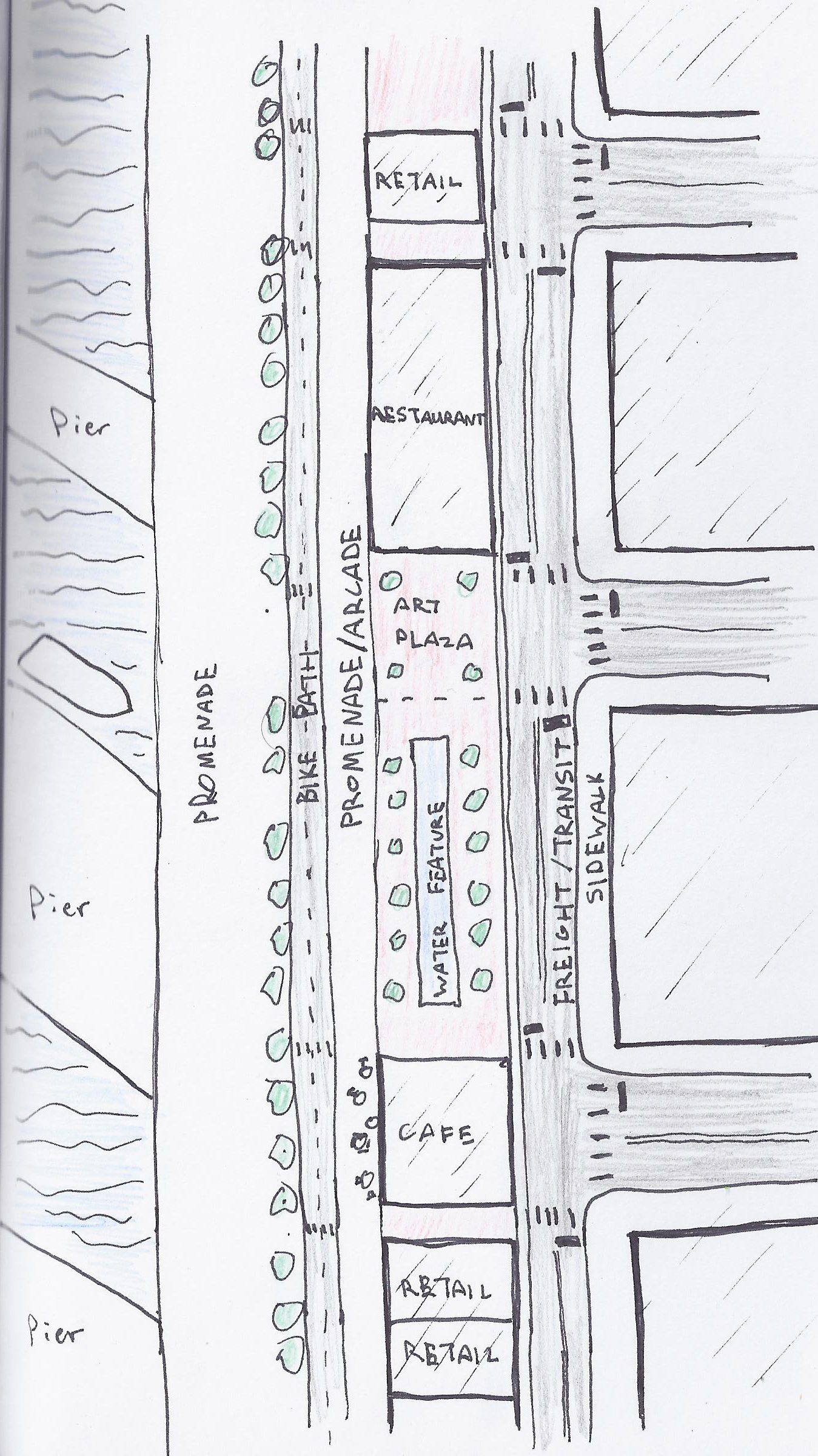 Quick sketch of street design alternative.