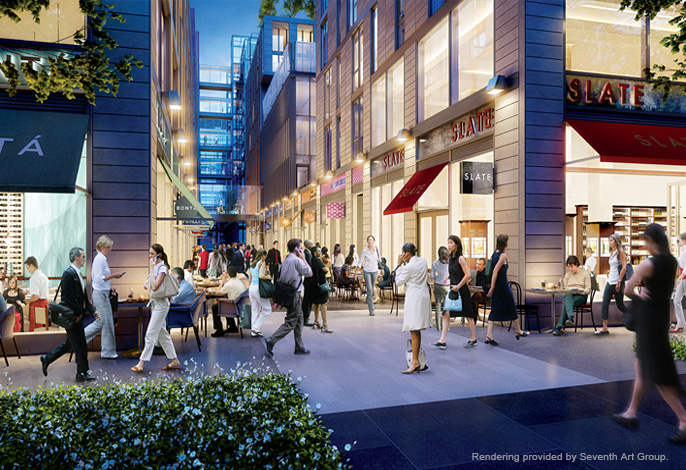 Due to open later this year only five blocks from the White House, the project offers 674 living units, 350 hotel rooms, 295,000 sqft. of retail space, 515,000 sqft. of office space, and over 1,800 underground parking spaces. It is a large undertaking that has been in the works since 2000, when then-mayor Anthony A. Williams created a task force to redevelop the site. The early vision included a new major attraction such as a theater or museum or even a baseball stadium, but a number of delays and political conflicts caused the programming to change throughout the decade. In 2004 the convention center was imploded and the site was paved with a temporary parking lot. The bid ultimately went to Hines Interests, an international development firm, and the concept eventually became a space that will be central to the city’s downtown.