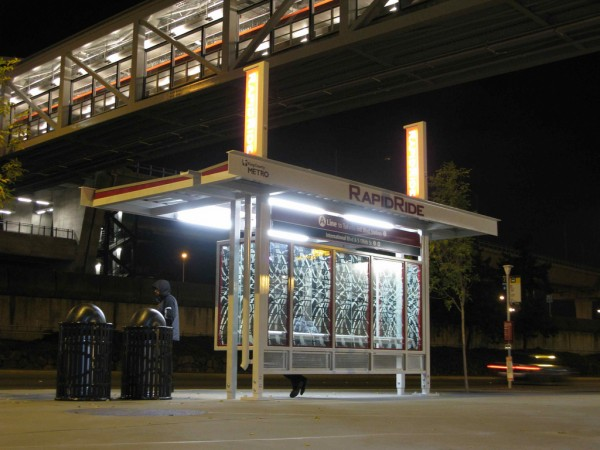 Example of an improved RapidRide bus stop at the SeaTac airport light rail station. (Seattle Transit Blog)