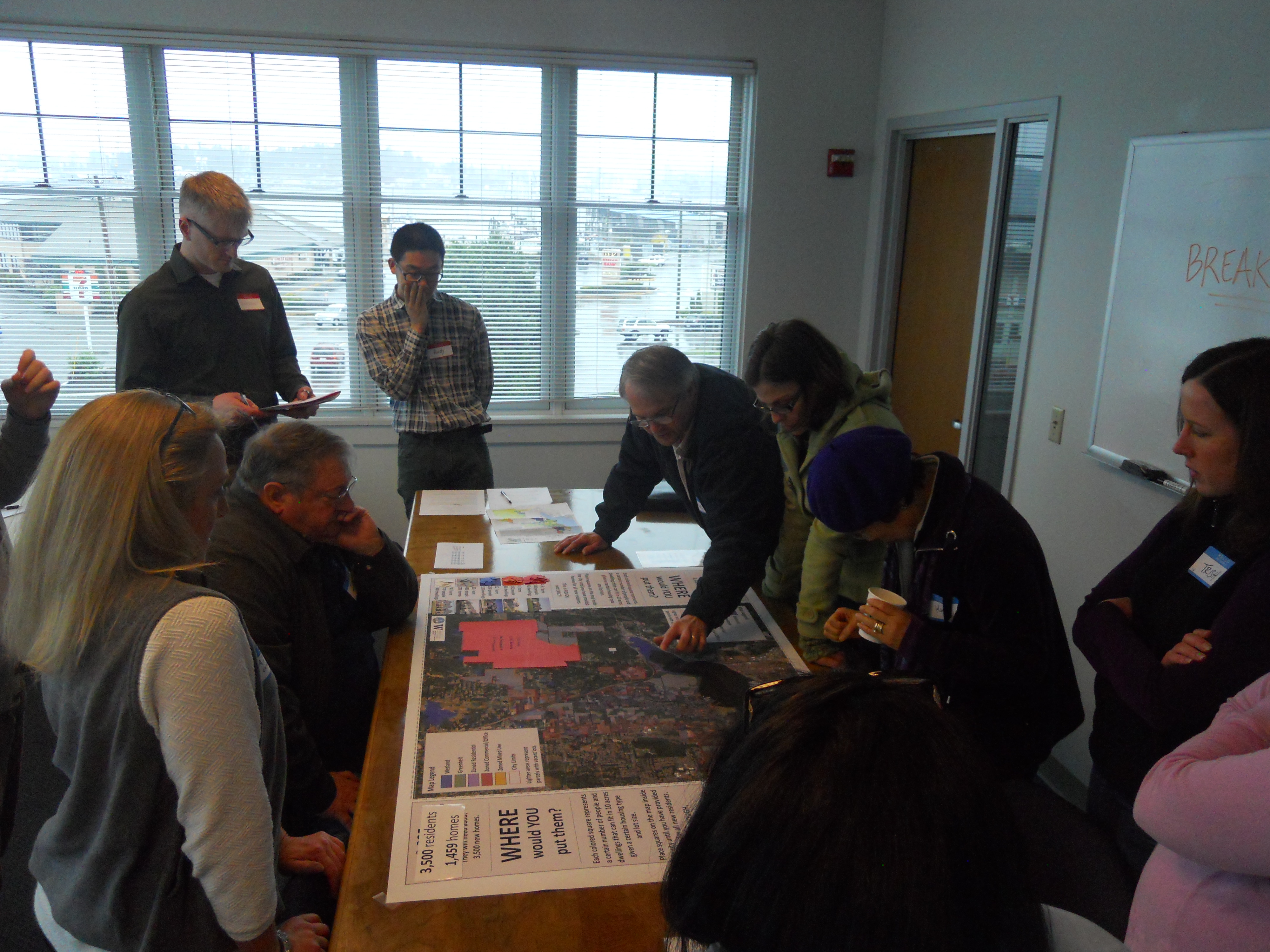 The event was hosted by students as part of a contract between the UW Department of Urban Design and Planning and the City of Port Orchard, which is located across the Puget Sound from Seattle and happens to be my hometown. The UW regularly enters into these win-win arrangements, which bring a small army of energetic students to resource-strained towns around the region while offering valuable planning experience for students. This studio class emphasized two important roles of planners: practical research and public participation.