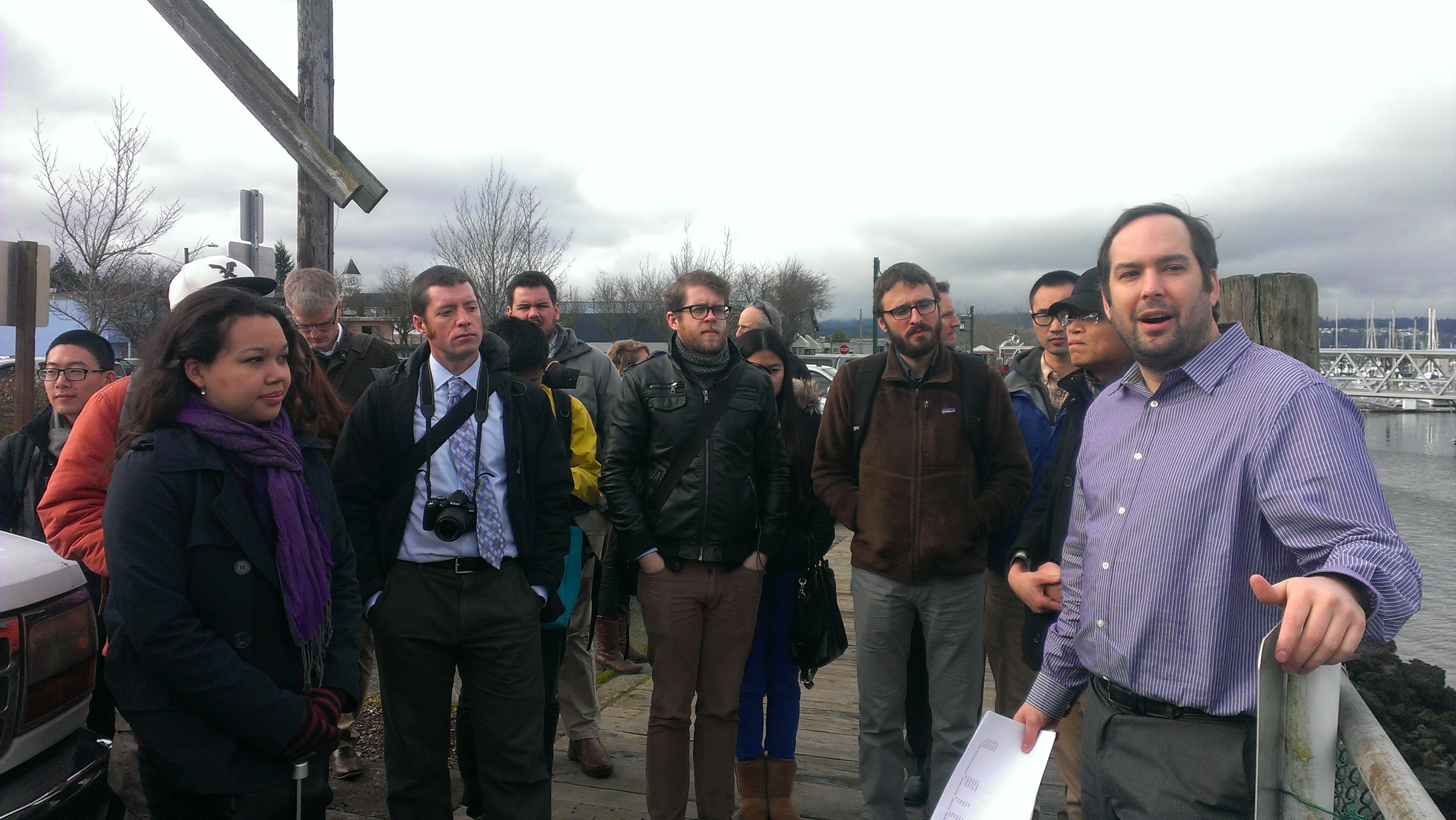 The team visits Port Orchard for the first time and hears from Nick Bond, right, the City Development Director.