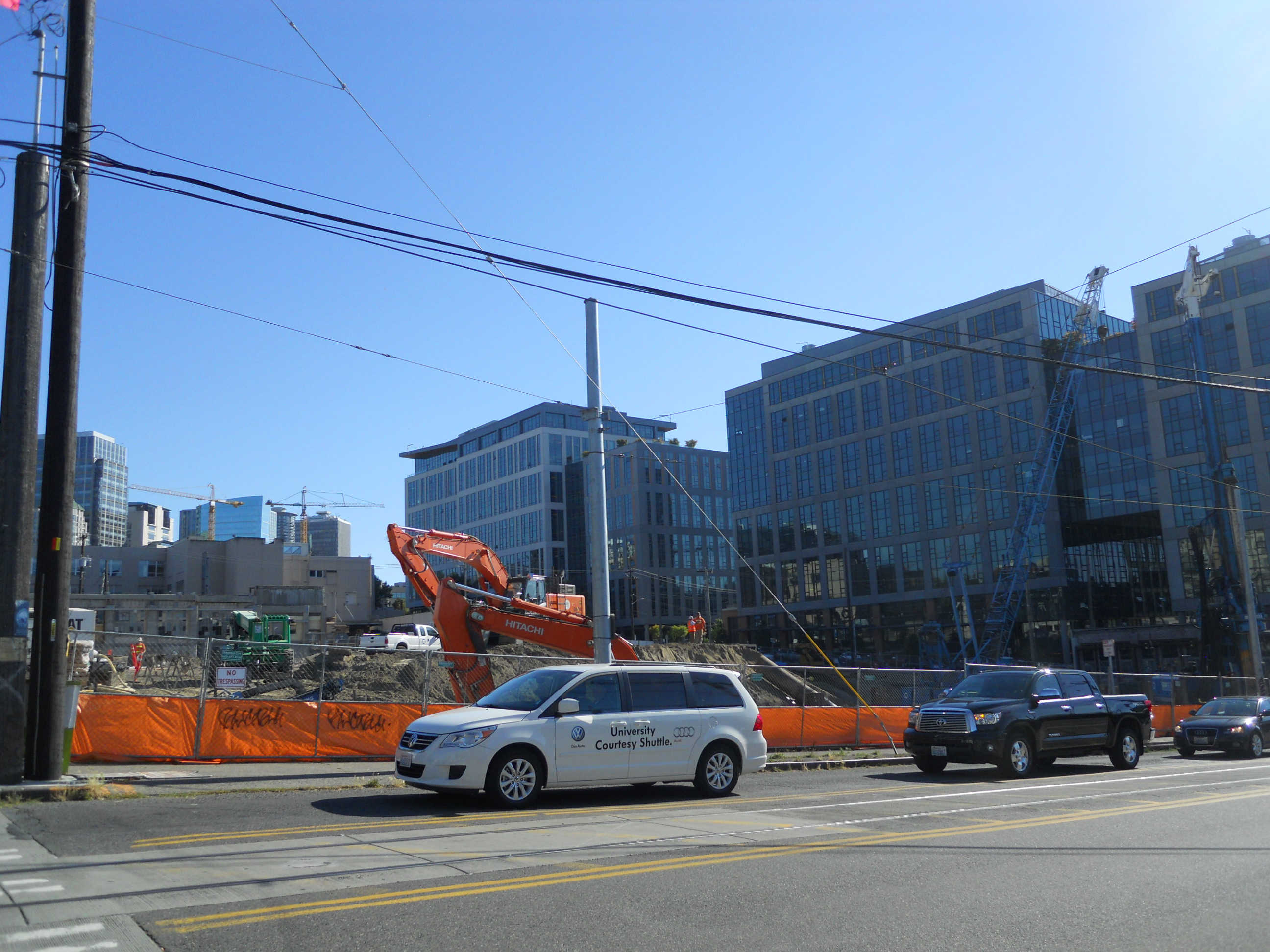 When we got off  I started by leading the group into part of the neighborhood that hasn’t been as touched by redevelopment. Old warehouses, single family homes, and apartment buildings remain just a few blocks from the bustling Amazon campus. There’s even a P-Patch and a mid-sized community park. But sprinkled throughout the area are new condos and apartments, and the ambient noise of nearby Interstate 5 is constantly broken by the din of multi-story construction projects at every turn.