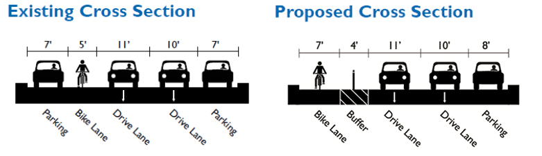 Originally, the PBL was only south of 45th Street. That segment will have a demonstration version before the actual repaving later this year. (SDOT)