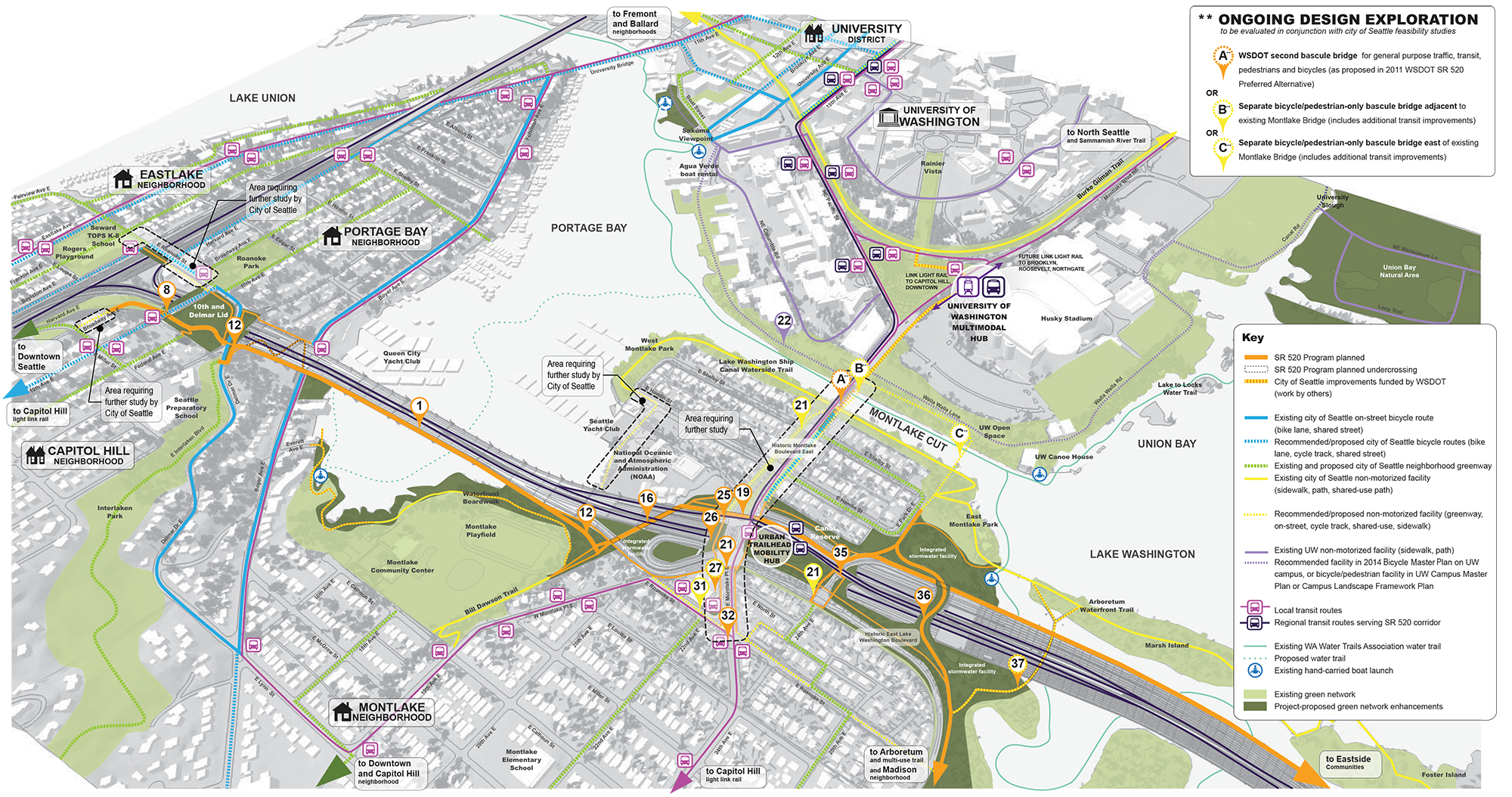 A draft vision of non-motorized connections in the Montlake project area. (WSDOT)