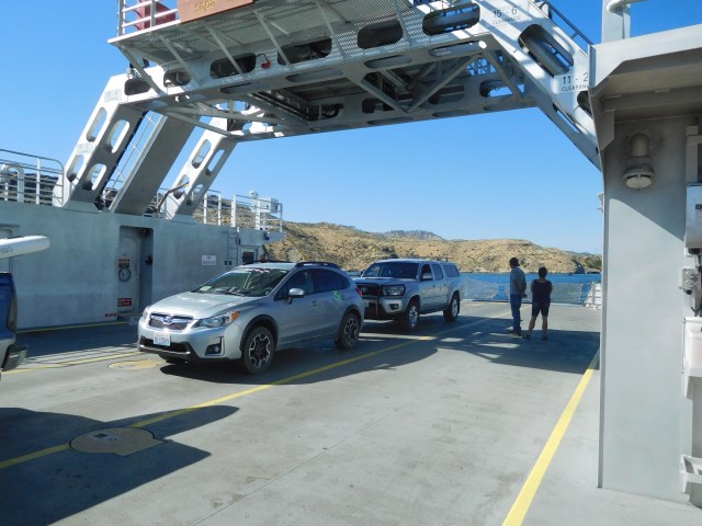 Probably the first time a Zipcar has been on the Keller ferry crossing the Columbia River. (Photo by the author)