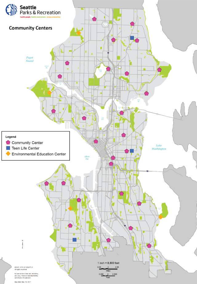 Community centers are a key component of neighborhood life in Seattle, hosting everything from fitness classes and language lessons to public forums and holiday festivals. They are also important venues for community groups to meet at affordable rates. Illustrating the importance of community centers, the Seattle Parks and Recreation Department recently published a standalone Community Center Strategic Plan. Among many policies and aspirations, a key planning goal is “Each Urban Center of the City is to be served by a community center.”