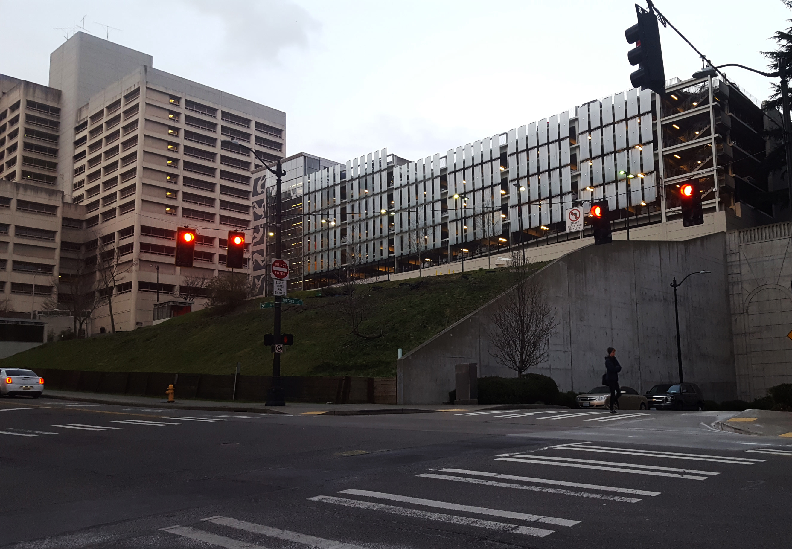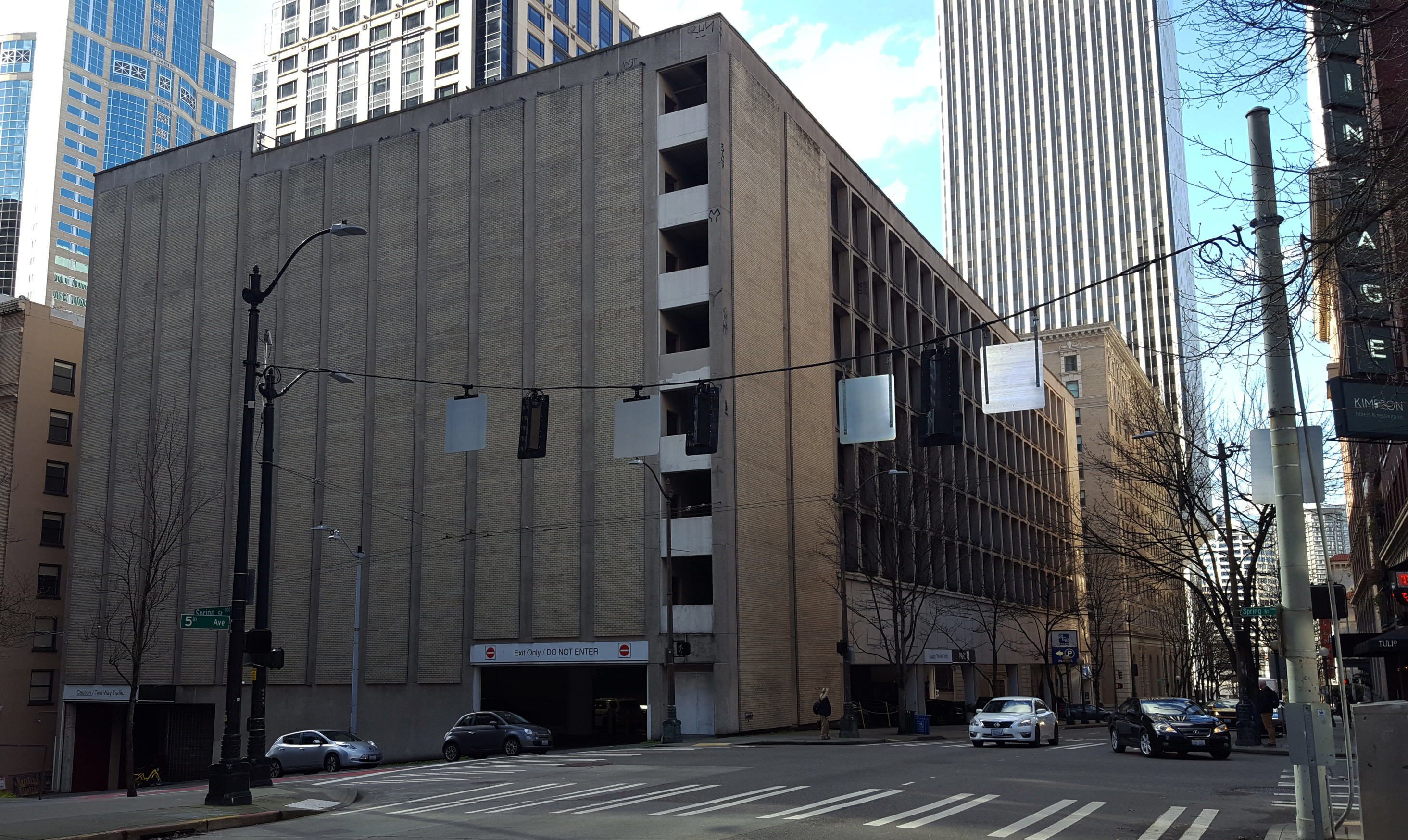 - The Olympic Garage is on a 0.6 acre site at 5th and Spring and opened in 1964. It is nine floors with 640 parking spaces and a small retail store. With its large site and central location it could be a prime opportunity for a mixed-use school and housing development in partnership between the UW, the City, and Seattle Public Schools, an idea explored in a 2014 design studio.