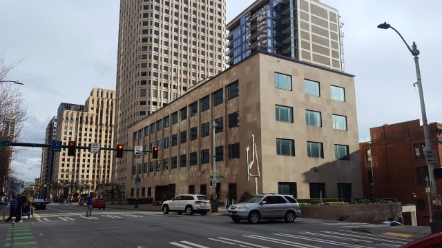 Not all short buildings are inevitably destined for demolition. Historical landmarks on prime land, like the Ross store and the Mann Building at on 3rd Avenue, and culturally significant structures are likely to remain indefinitely. Such buildings contribute to the city’s variety of architectural charm, support small commercial tenants, and oftentimes provide affordable houseing. Where development pressures do touch small historical properties in Downtown the result is often expansion and renovation, not a tear-down. For example, the four-story Federal Reserve building will have an eight-story addition built above it in a zone with no height limit. The five-story Maritime Building on the waterfront is gaining an extra three floors in a 170-feet zone. The First United Methodist Church at 5th and Marion could have made way for more office space at F5 Tower but was beautifully restored as an event space.