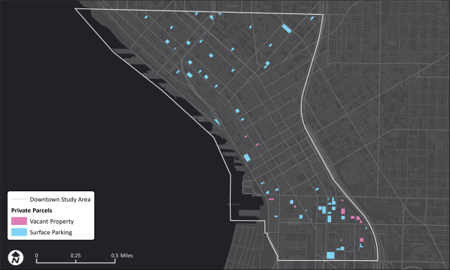 Private surface parking lots and vacant properties in Downtown. (Data provided by permission of King County)