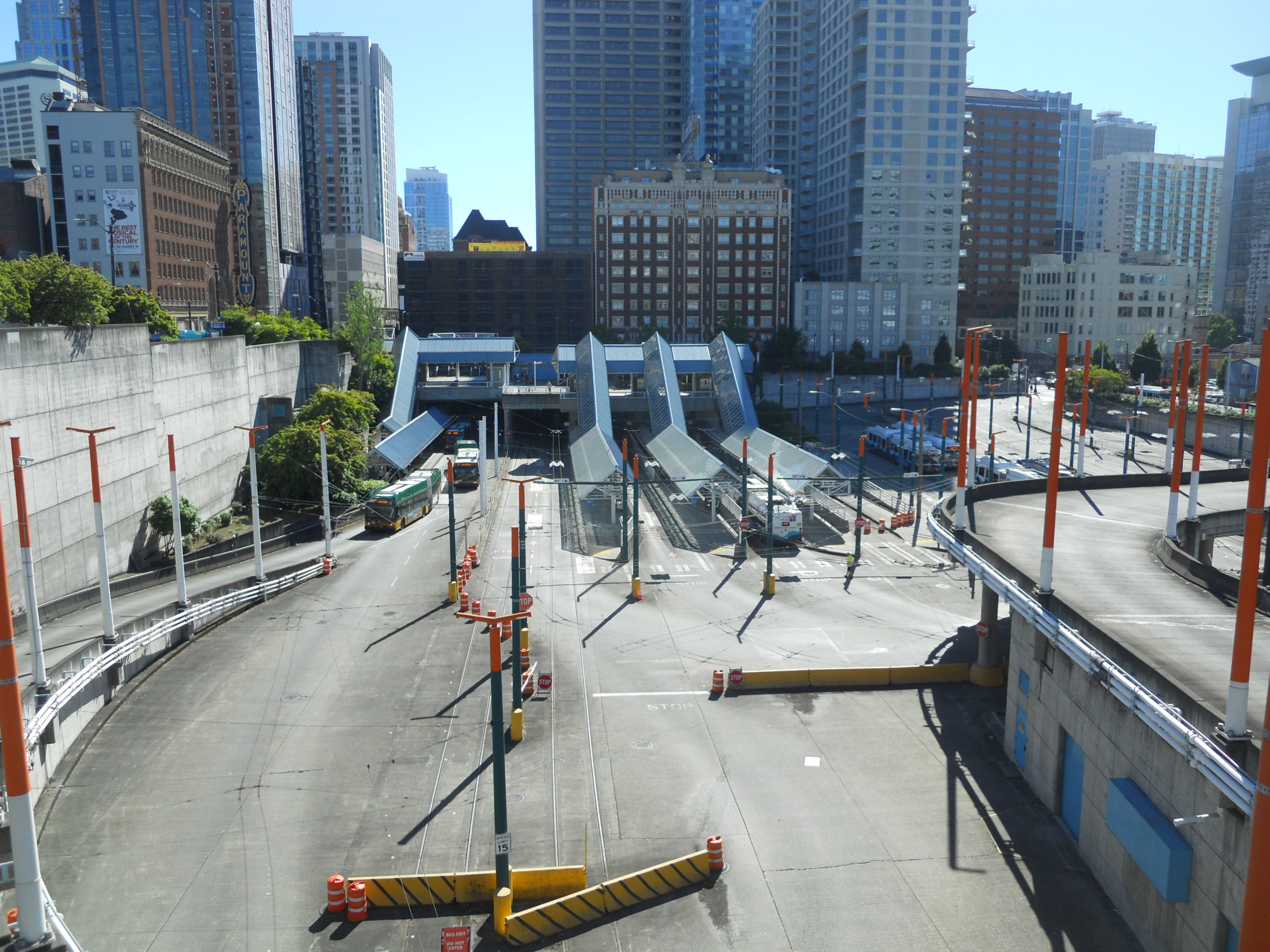 The DSTT was used only by buses from its opening in 1990, and was shared by buses and light rail starting in 2009. King County Metro intended to eventually transfer the tunnel to Sound Transit as regional light rail service became prioritized over buses. The handover was expected when light rail reached Northgate in October 2021. But the Convention Center project hastened this transition by at least two-and-a-half years, since closing Convention Place Station for construction would eliminate bus access into the tunnel. Options to keep running buses under the new Convention Center building were apparently not explored. March 23, 2019 was the last day of bus service in the tunnel and the remaining seven routes were moved to surface streets.