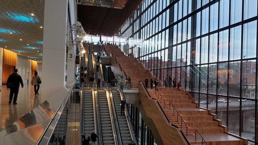 A more personal interest is increased physical access to this ostensibly public facility built using tax dollars and a bailout. The general public is limited to the ground-level retail spaces where people are most welcome if they spend money. The obvious physical opportunity is to invite people to explore the Pine Street “grand staircase”, which offers fun and beautiful seating with spectacular views of the city. It might be reasonable to open this when there is not a full-building event going on, but for now the Convention Center says “Summit’s Hillclimb stairs are within private event space and available for client use only.”