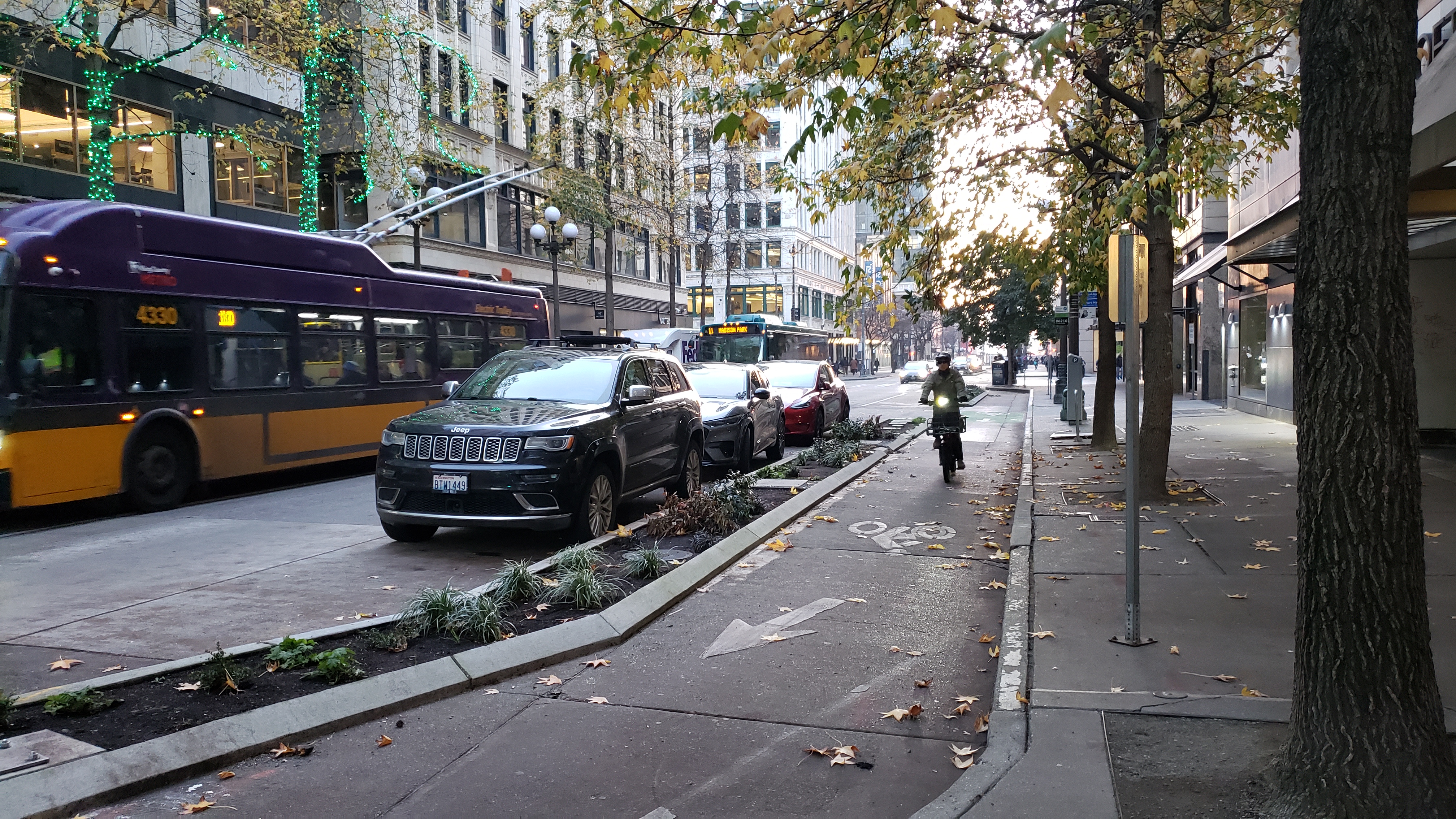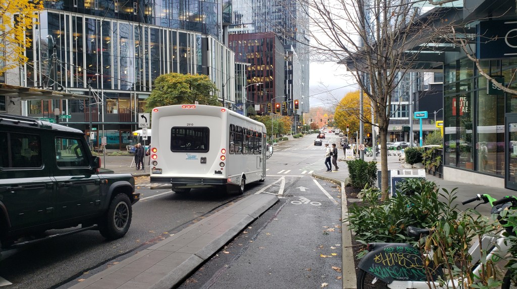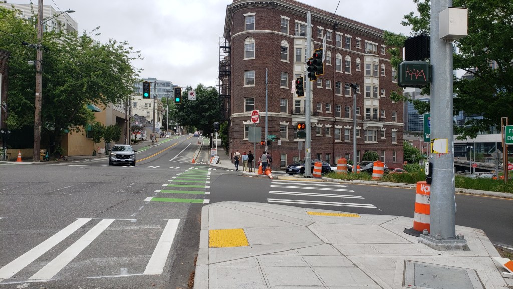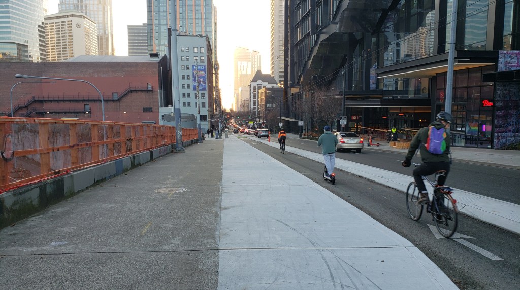 However, when contacted for this article, SDOT’s tune had changed. They now say “SDOT is currently in the design phase to build protected bike lanes on these two blocks to connect to Bell Street. There is sufficient funding from the Convention Center to cover the cost of construction for this work, and SDOT is hoping to finish this segment in the next couple years.” Further information is not yet available on the project website.