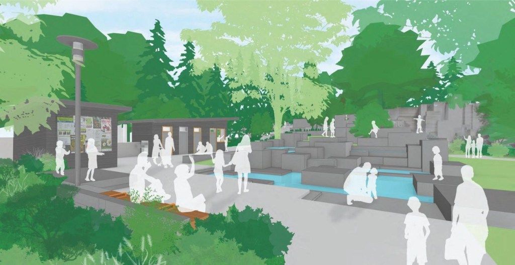 - A new public restroom, storage, and concierge building at the park’s main open space in Seneca Plaza